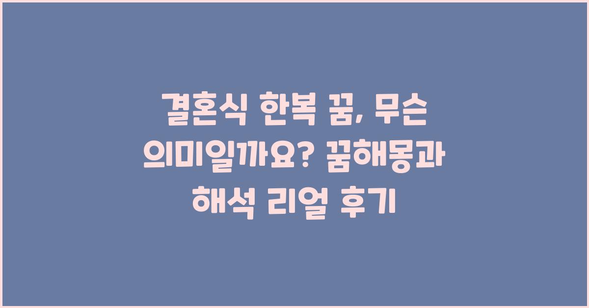 결혼식 한복 꿈, 무슨 의미일까요? | 꿈해몽 꿈풀이 꿈해석 꿈의미