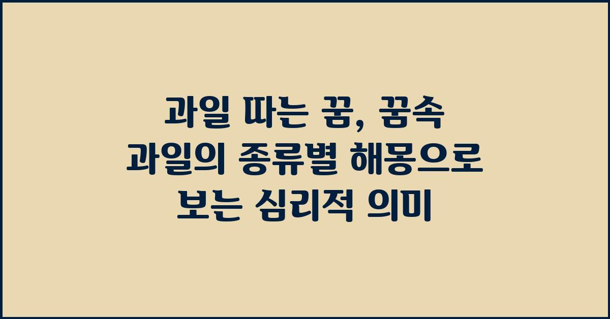 여러분의 감정이 고스란히 반영된 꿈속의 과일들을 통해 여러분의 심리를 살펴보는 것도 도움이 됩니다. 과일 따는 꿈, 꿈속 과일의 종류별 해몽을 스스로 상기하며, 이를 통해 자신의 내면을 더 잘 이해할 수 있게 되기를 바랍니다.
