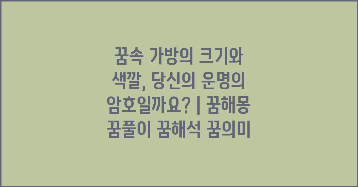 📖 꿈속 가방의 크기와 색깔, 무엇을 의미할까요?
