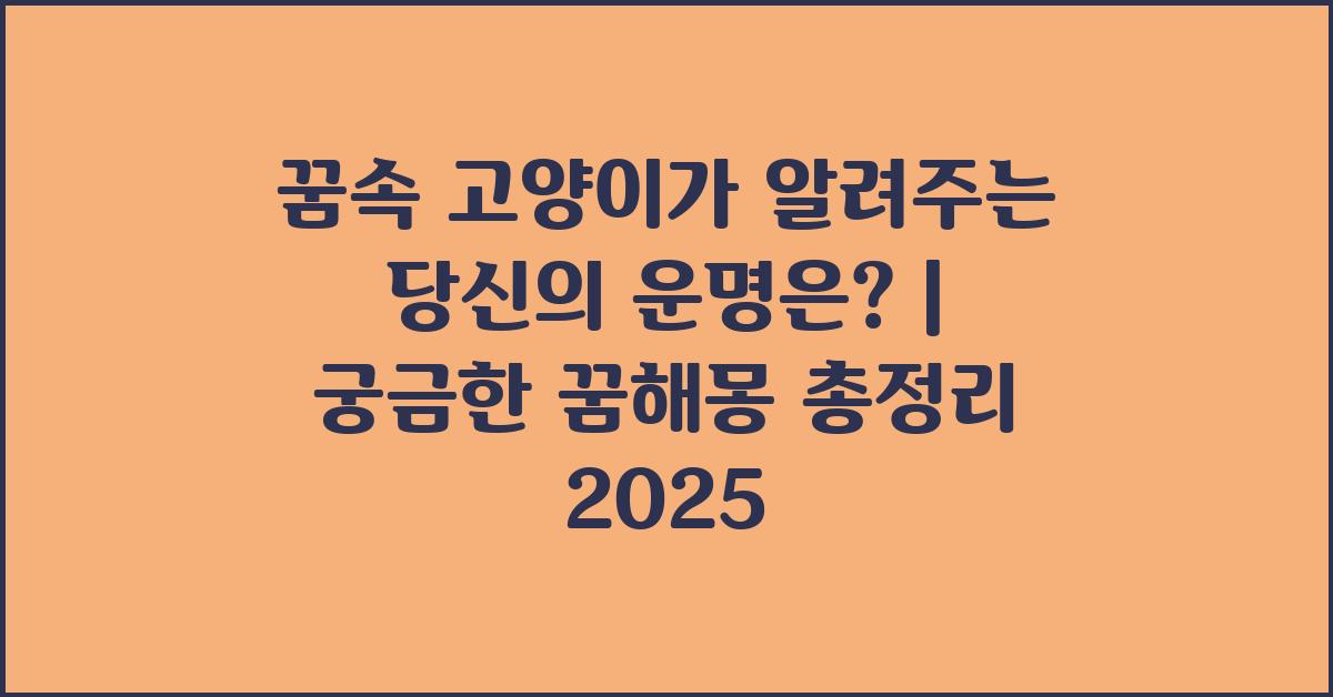 꿈속 고양이가 알려주는 당신의 운명은? 많은 사람들이 꿈에서 만나는 고양이에 대해 궁금증을 가지곤 합니다. 고양이는 고대부터 신비로운 존재로 여겨져 왔고, 그들의 행동이나 모습은 꿈에서 특별한 의미를 가질 수 있습니다. 이번 포스팅에서는 꿈속에서의 고양이와 그 뜻에 대해 심도 있게 탐구해 보겠습니다.