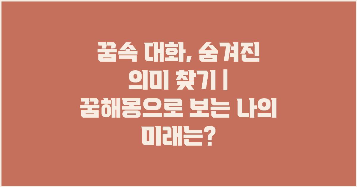 꿈속 대화, 숨겨진 의미 찾기 | 꿈해몽 꿈풀이 꿈해석 꿈의미는 실제 삶에 중요한 통찰을 제공할 수 있습니다. 여러분의 꿈이 주는 메시지를 잘 이해하고 활용해 보세요.