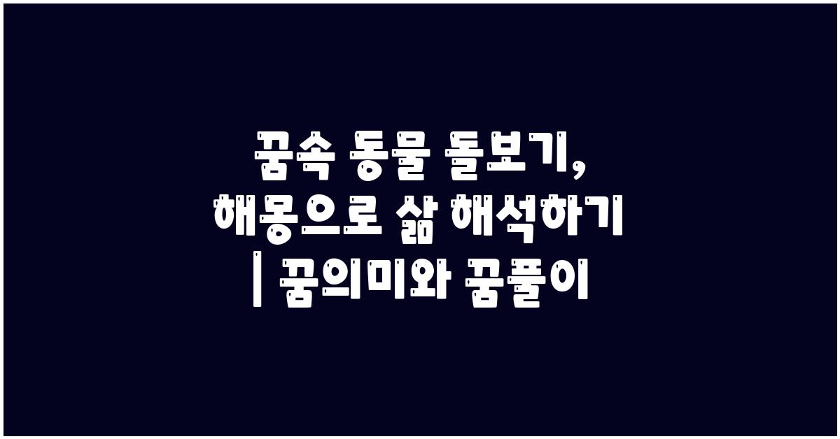 꿈속 동물 돌보기: 꿈 해몽과 의미 | 꿈해몽 꿈풀이 꿈해석 꿈의미가 중요한 이유는 우리의 내면을 이해하는 데 도움을 주기 때문입니다. 개인적으로도 나는 꿈속의 동물들과의 경험을 통해 많은 깨달음을 얻었습니다. 약간은 괴짜처럼 보일 수도 있지만, 꿈은 나에게 일종의 안내서와 같은 역할을 해왔죠.