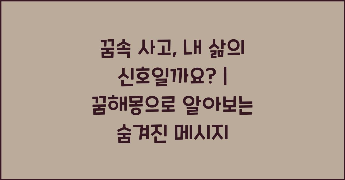 결국, 꿈속 사고, 내 삶의 신호일까요? 꿈해몽을 통해 발견한 메시지가 내 삶에 어떤 긍정적인 변화를 가져올지 계속해서 고민해야 합니다. 꿈은 내면의 목소리이자 현실에서의 방향성을 찾는 데 큰 역할을 합니다. 여러분도 이제는 자신의 꿈을 더 잘 이해하고, 그로 인해 더 나은 삶의 선택을 할 수 있는 기회로 삼길 바랍니다.