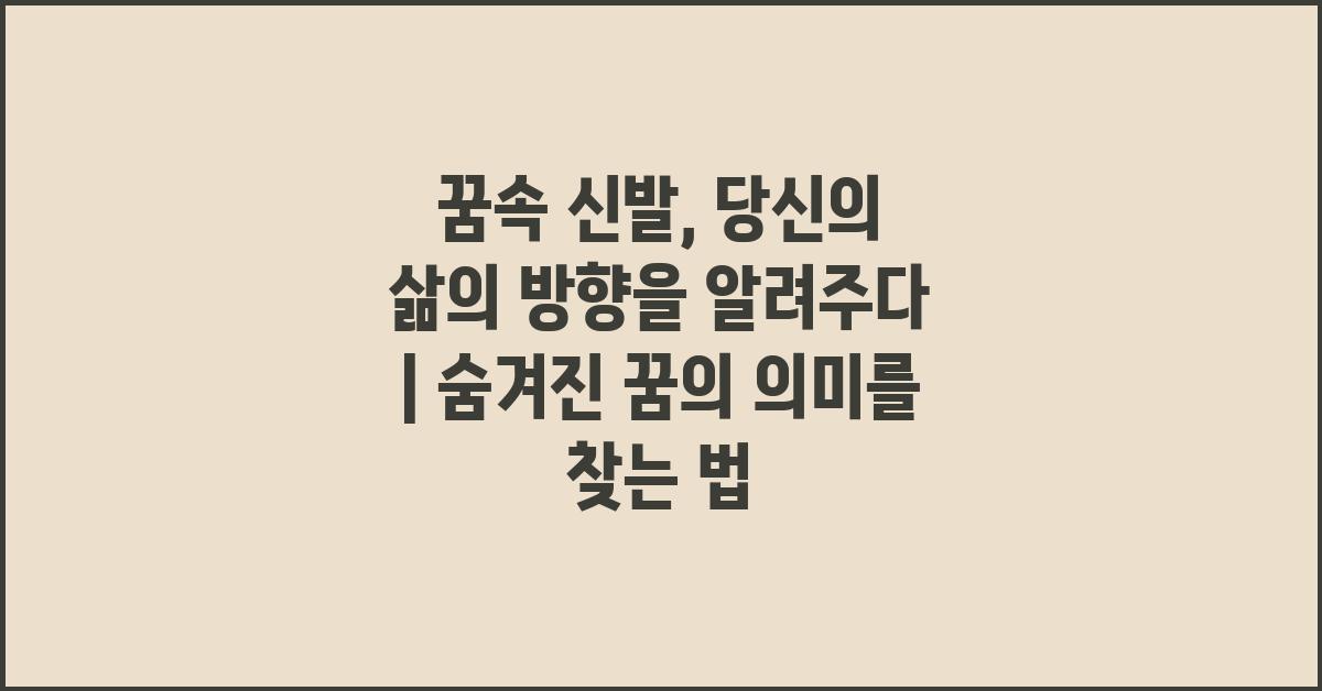 꿈속 신발, 당신의 삶의 방향을 알려주다 이 주제를 좀 더 깊이 있게 이해하기 위해서는 기본적인 꿈 해석의 원칙을 이해해야 합니다. 꿈은 주로 두 가지로 해석할 수 있는데, 하나는 개인의 심리상태를 반영하는 것이고, 다른 하나는 무의식의 메시지를 전달하는 것입니다. 따라서 꿈속 신발을 해석할 때는 여러분의 현재 상황이나 감정을 고려하는 것이 중요합니다.
