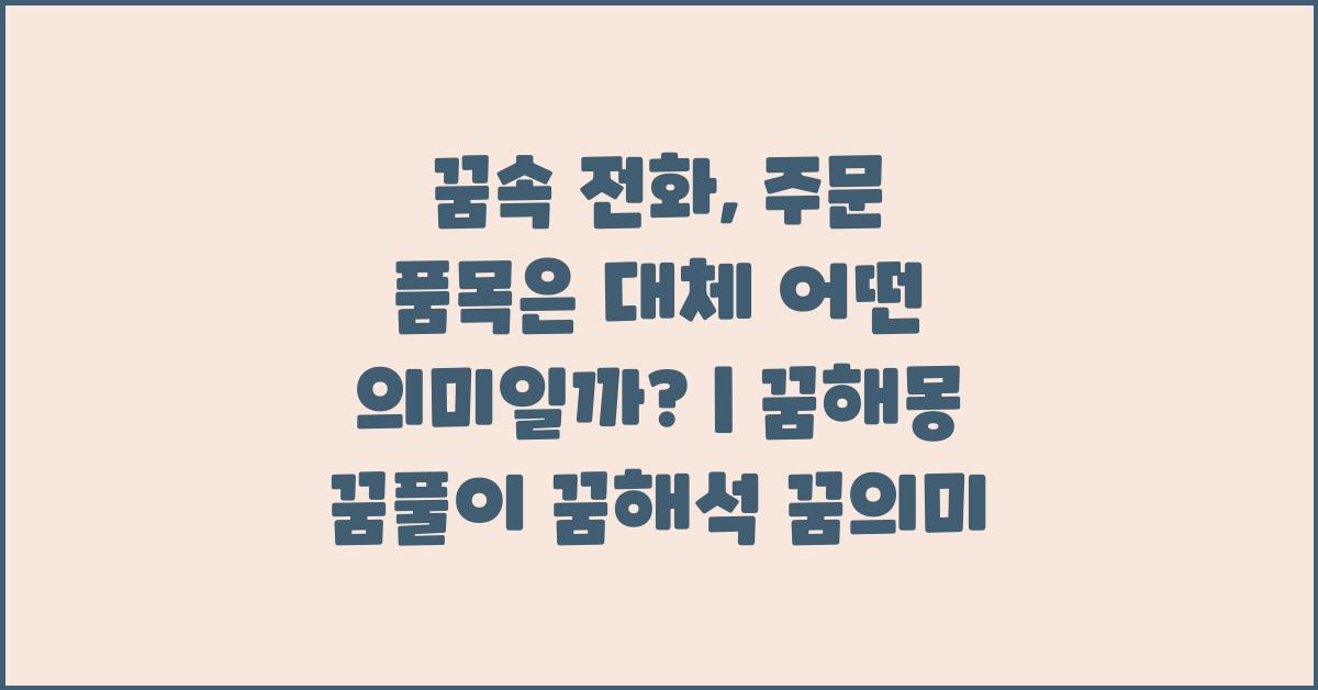 꿈속 전화, 주문 품목은 무엇이었나요? 이 질문에 대한 탐구는 꿈의 세계를 이해하는 데 있어 중요한 열쇠가 될 수 있습니다. 꿈속에서 전화를 통해 전달받는 메시지는 우리 마음의 한 구석에 잠재된 감정이나 해결해야 할 일들을 나타냅니다. 또한, 전화를 거는 사람에 따라서 그 의미는 달라질 수 있습니다. 친구, 친척, 혹은 나 자신이 전화를 건 경우, 각각의 관계와 상황이 꿈의 내용을 더욱 풍부하게 만들어 줍니다.