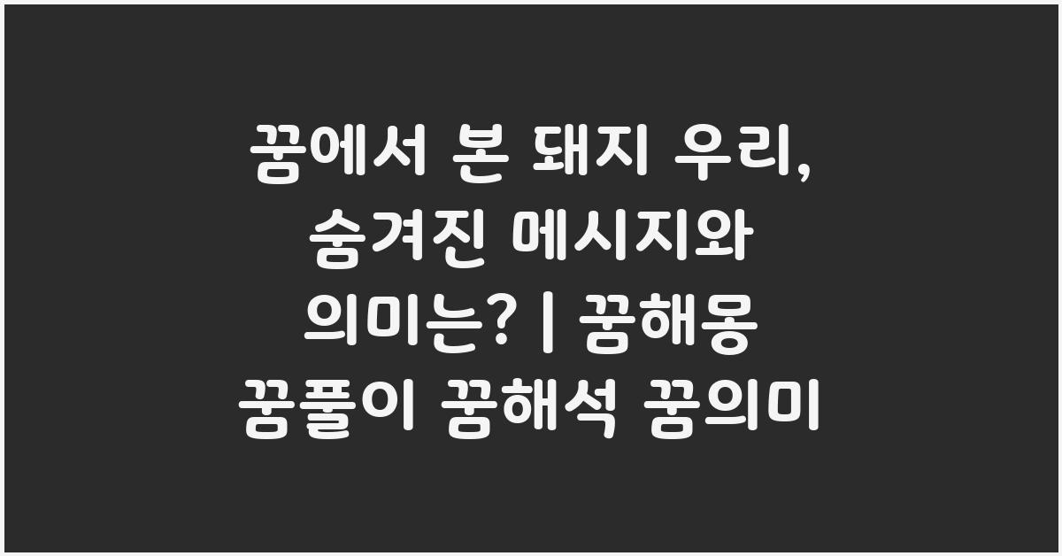 꿈은 그 자체로 신비롭고 매혹적인 세계입니다. 특히 꿈에서 본 돼지 우리, 나에게 주는 메시지는? | 꿈해몽 꿈풀이 꿈해석 꿈의미는 꿈의 내용을 이해하는데 중요한 요소입니다. 돼지는 흔히 풍요와 부의 상징으로 알려져 있지만, 꿈에서의 돼지 우리라는 이미지에는 더 깊은 의미가 숨겨져 있을 수 있습니다. 이러한 꿈을 통해 우리는 자신의 내면을 탐구하고, 감춰진 메시지를 발견할 수 있습니다.