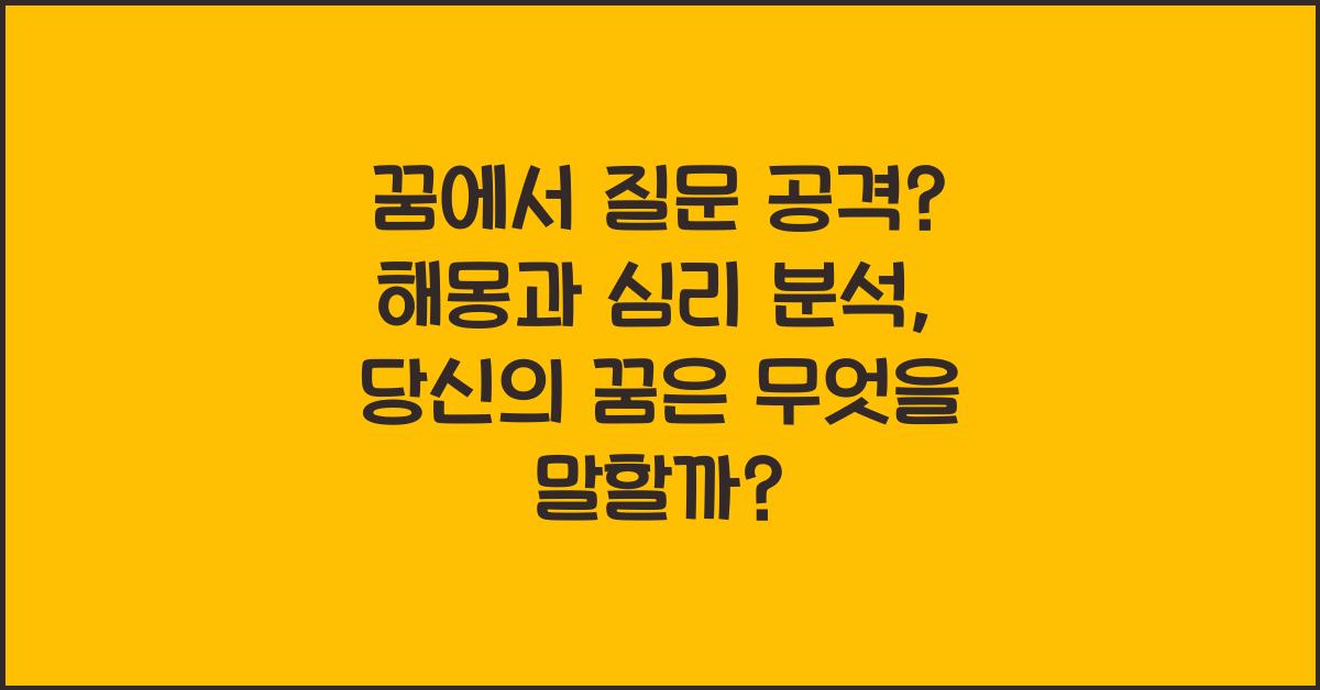 꿈에서 자주 나타나는 질문들은 우리의 마음속에 있는 의문이나 갈등을 상징하기도 한다. “꿈에서 질문 공격? 해몽과 심리 분석”을 통해 이러한 질문들이 어떤 의미를 지니고 있는지 이해하는 것이 중요하다. 많은 경우, 꿈속에서 경험하는 질문들은 우리 스스로가 대답하고 싶어하는 숨겨진 욕구를 반영한다.