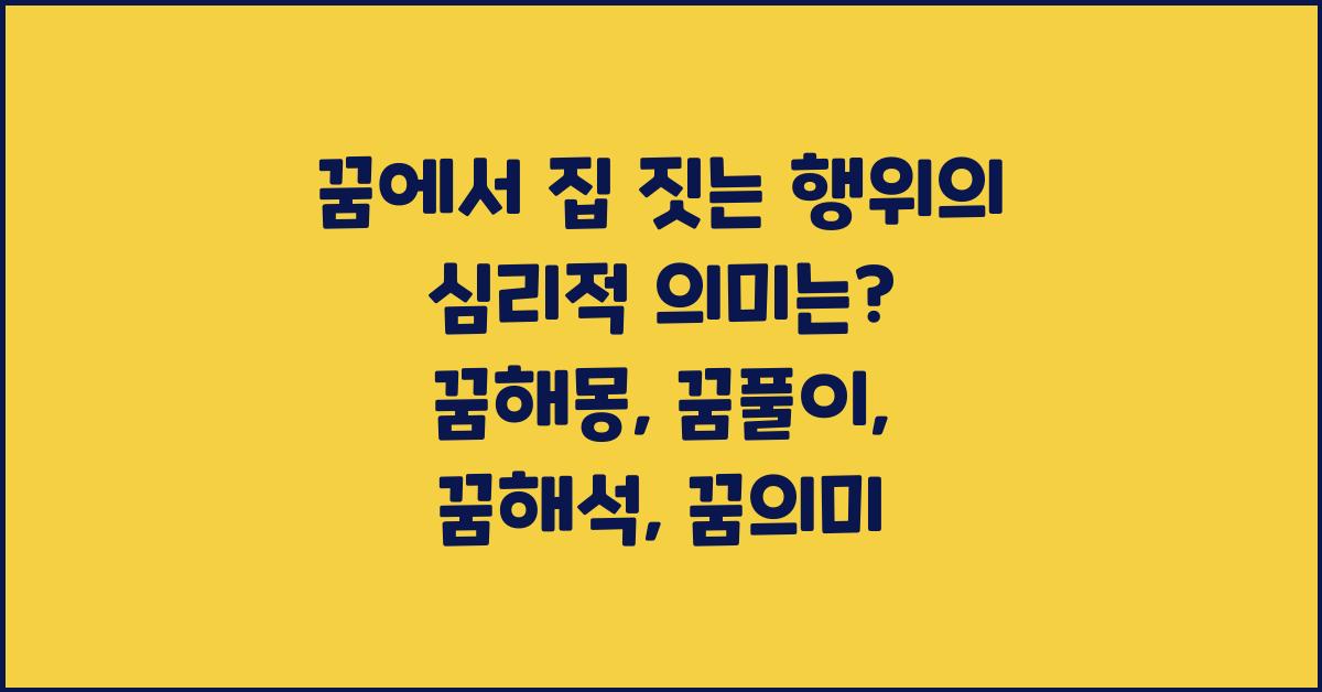 꿈에서 집을 짓는 행위의 심리적 의미 | 꿈해몽 꿈풀이 꿈해석 꿈의미는 꿈 분석의 열쇠입니다. 꿈을 꾼 후에는 그 내용을 기록하고, 어떤 감정을 느꼈는지 스스로 물어보는 것이 중요합니다. 이 과정이 꿈의 의미를 더 깊이 이해하는 데 도움을 줄 수 있습니다.