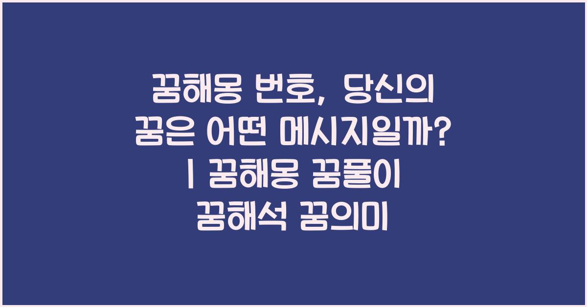 여러분은 꿈에서 어떤 경험을 하셨나요? 꿈은 우리의 잠재의식을 통해 전달해주는 메시지입니다. 꿈의 내용을 해석하고 그로 인해 여러분의 삶에 중요한 메시지를 찾아보는 일은 흥미롭고도 신비로운 경험이 될 수 있습니다. 그렇다면 꿈해몽 번호, 당신의 꿈은 무엇을 의미할까요? | 꿈해몽 꿈풀이 꿈해석 꿈의미에 대해 깊이 들어가 보겠습니다.