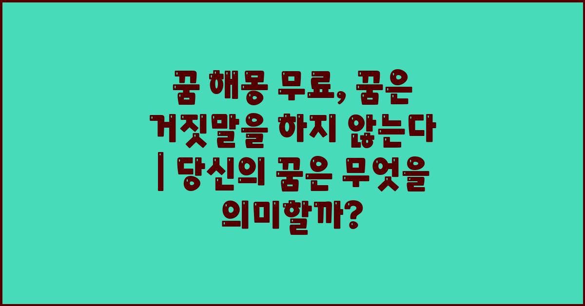 📌 꿈 해몽 무료: 꿈은 나에게 어떤 메시지를 줄까?