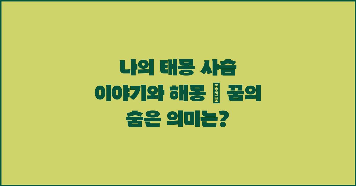 여러분, 꿈은 단순한 신기루일까요? 아니면 내 마음의 깊은 바다에서 우러나온 메시지일까요? 나의 태몽 사슴 이야기와 해몽 | 꿈해몽 꿈풀이 꿈해석 꿈의미를 통해 우리는 꿈의 진정한 의미를 찾을 수 있습니다. 오늘은 그 숨은 의미를 파헤쳐보죠.