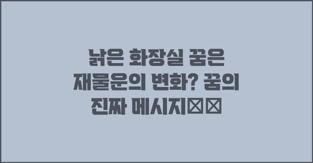 우리 모두는 꿈을 꿀 때가 있습니다. 그 꿈 속에서 우리는 다양한 상황과 감정을 경험하게 되죠. 특히 '낡은 화장실 꿈은 재물운의 변화?'라는 질문은 많은 이들에게 큰 관심을 끌고 있습니다. 꿈 속의 화장실은 본래 감정의 배출과 정화의 상징으로 표현되곤 하는데요. 그렇다면 낡은 화장실이 꿈에서 나타나는 것은 어떤 의미일까요?