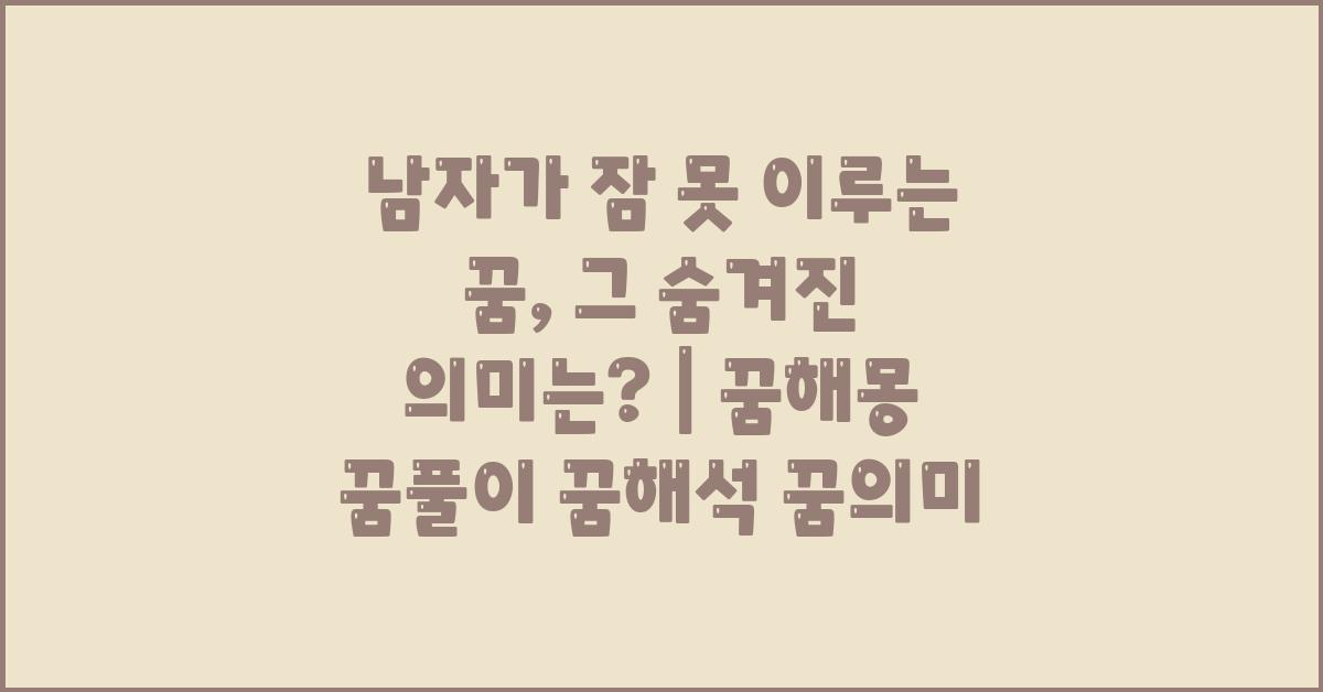 꿈은 종종 우리가 의식하지 못하는 깊은 감정이나 생각을 드러내는 신비로운 창입니다. 특히 남자가 잠 못 이루는 꿈, 무슨 의미일까? | 꿈해몽 꿈풀이 꿈해석 꿈의미 는 많은 이들에게 궁금증을 자아내는 주제입니다. 이 꿈은 단순한 불안감이나 스트레스로 해소되기 보다는, 우리의 일상과 정신 상태에 대한 중요한 신호일 때가 많습니다. 꿈 속에서 깊은 잠에 빠져들지 못한 남자, 그가 경험하는 느낌은 어떤 것일까요?