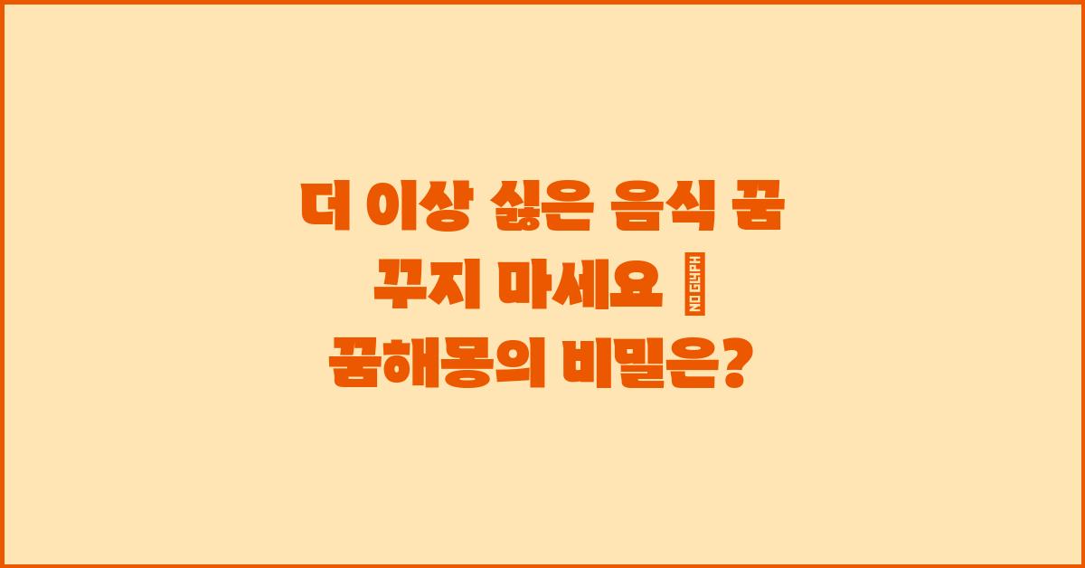 결국, 꿈은 우리 마음속에서 떠오르는 다양한 감정을 표현하는 하나의 방법입니다. 더 이상 싫은 음식 꿈 꾸지 마세요! | 꿈해몽 꿈풀이 꿈해석 꿈의미라는 주제를 통해, 여러분이 겪는 감정들을 이해하고, 보다 더 행복한 내일을 맞이할 수 있기를 바랍니다. 😊