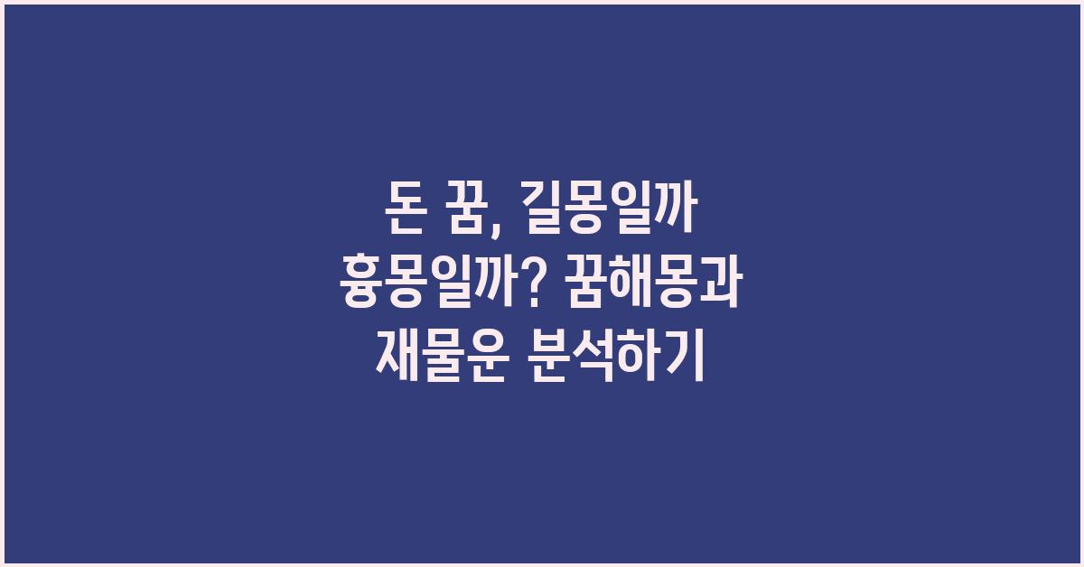 돈 꿈은 많은 사람들에게 깊은 관심을 받는 주제입니다. 꿈에서 돈을 보는 것은 종종 부와 관련된 희망적인 메시지를 내포한다고 여겨지지만, 반대로 흉몽일 수도 있다는 의견도 있습니다. 꿈의 해석은 사람의 상황이나 감정에 따라 다르게 나타나기 때문에, 돈 꿈의 의미를 정확히 이해하는 것이 중요합니다. 돈 꿈, 길몽일까 흉몽일까? 이 질문의 답을 찾기 위해, 돈 꿈의 다양한 해석을 살펴보겠습니다.
