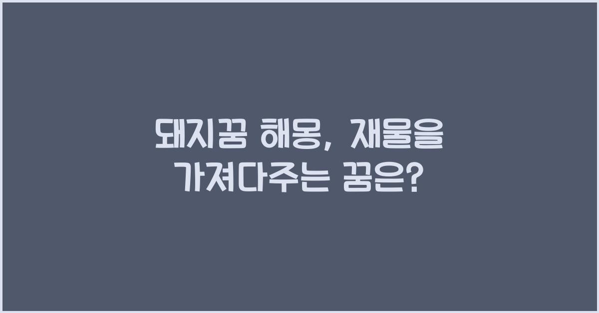 돼지꿈, 어떤 꿈이 재물을 가져다줄까? 많은 사람들이 꿈을 통해 다양한 메시지를 받는다고 생각합니다. 특히 돼지꿈은 말 그대로 재물과 관련된 의미를 내포하고 있어서 꿈을 꾸는 이들에게 큰 기대를 줍니다. 꿈속에서 나타나는 돼지는 풍요와 부의 상징으로, 갑자기 예상치 못한 재물이 생길 것이라는 긍정적인 암시를 담고 있을 수 있습니다. 믿거나 말거나, 하지만 나도 한 번 꿈에서 돼지를 봤을 때, 정말 좋았던 기억이 나네요!
