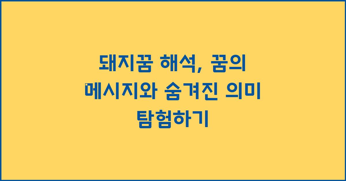 꿈에서 돼지를 만나는 것은 단순한 우연이 아닙니다. 돼지꿈 해석: 꿈의 메시지를 찾아서 | 꿈해몽 꿈풀이 꿈해석 꿈의미는 우리의 일상 속에 숨어 있는 풍요와 경고를 알려주는 귀중한 메시지를 포함하고 있습니다. 이러한 메시지를 잘 이해하고 실천에 옮길 수 있다면, 삶에 변화가 찾아올 것입니다. 꿈속의 돼지는 단순한 존재가 아니라 우리에게 큰 가르침을 주는 동반자입니다.
