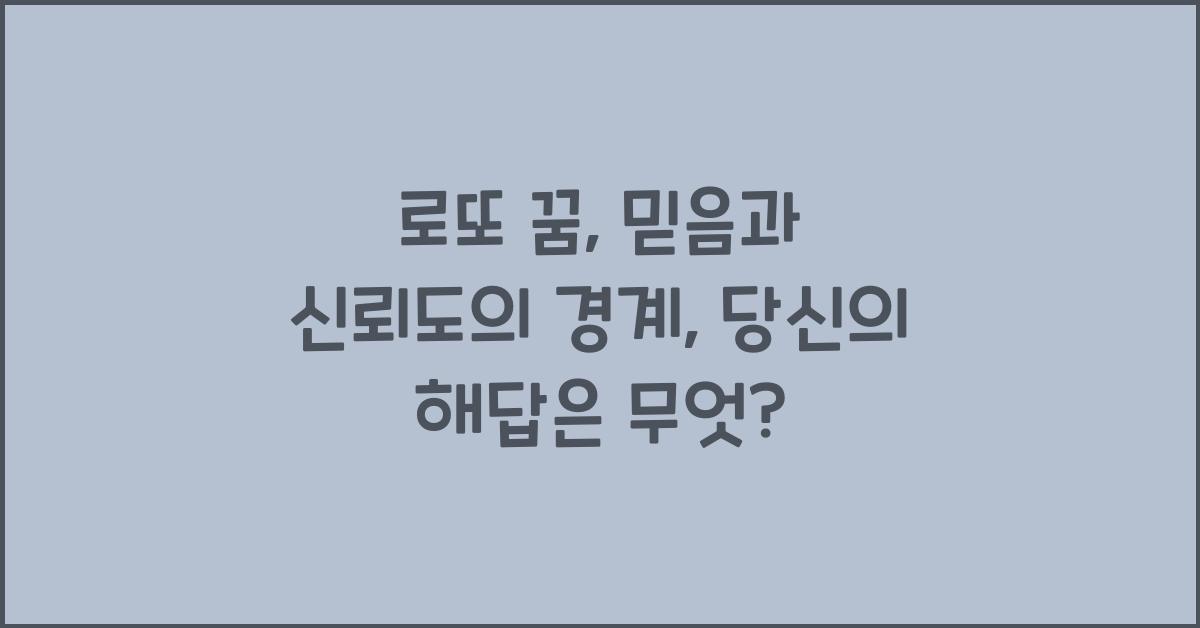 로또 꿈: 믿음과 신뢰도의 경계 | 꿈해몽 꿈풀이 꿈해석 꿈의미를 통해 여러분도 자신의 로또 꿈에 대해 새롭게 생각해보시기 바랍니다. 우리의 꿈은 때로는 단순한 판타지일 수 있지만, 그 속에 숨어 있는 진실한 소망과 길잡이를 통해 더 나은 삶으로 나아갈 수 있는 힘을 지닙니다.