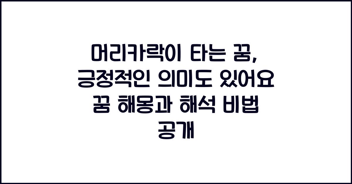 여러분, 꿈 속에서 머리카락이 타는 장면이 떠오른다면 어떤 기분이 드시나요? 심리적으로는 많이 불안하고 끔찍한 생각이 들겠죠. 꿈은 종종 우리가 평소 인지하지 못하는 감정이나 고민을 나타내는 경우가 많아요. 머리카락이 타는 꿈, 긍정적인 의미도 있어요 | 꿈해몽 꿈풀이 꿈해석 꿈의미를 통해 이 꿈이 실제로 무엇을 의미하는지 알아보도록 합시다.
