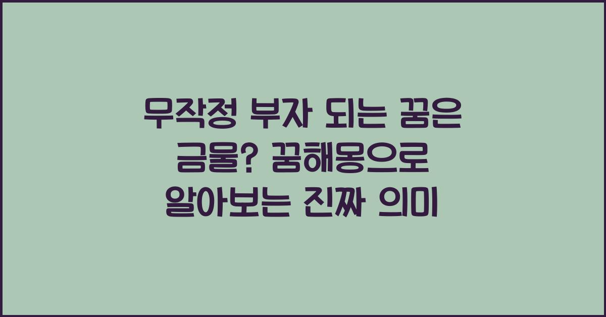 꿈은 우리의 잠재의식을 반영하는 신비로운 세계입니다. 특히 무작정 부자 되는 꿈은 금물이라는 경고처럼 들리기도 합니다. 하지만 꿈의 의미를 풀어보면, 단순히 부자가 되기를 원한다거나 그러한 바람에서 기인한 것이 아니라, 자신의 내면을 들여다보는 기회를 제공합니다. 그럼 함께 이 꿈이 전하는 메시지를 상세히 알아보도록 하겠습니다.