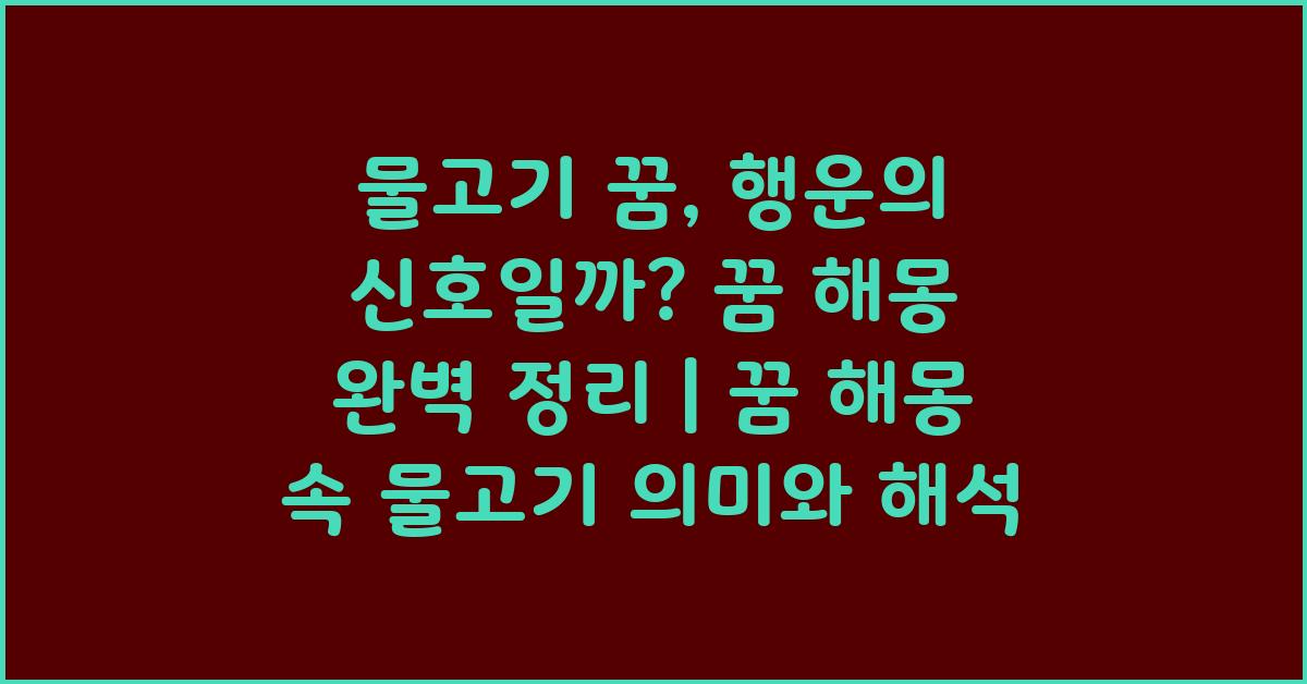 물고기 꿈, 행운의 신호일까? 꿈 해몽 완벽 정리! 여러분들은 이제 이 꿈의 깊은 의미를 이해하고, 꿈 속 메시지를 삶에 연결하여 긍정의 길로 나아가기를 바랍니다. 🐟✨