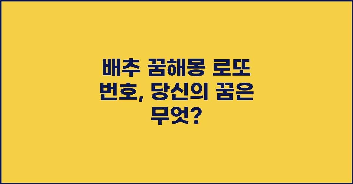 꿈은 우리의 잠재의식과 감정, 일상의 경험이 뒤섞여 나타나는 신비로운 현상입니다. 특히 배추와 같은 구체적인 이미지는 더 많은 상징성을 지닙니다. 꿈속의 배추가 나타나는 것은 종종 부와 풍요를 상징한다는 이야기가 많습니다. 여러분도 배추 꿈을 꾸면서 '로또 번호는 뭐야?'라는 궁금증을 가졌던 적이 있지 않으신가요? 꿈해몽을 통해 그 의미를 함께 해석해 봅시다.