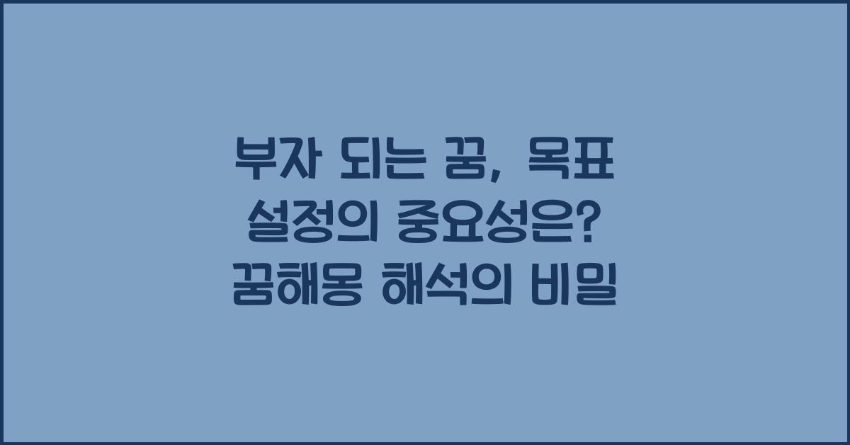 | 부자 되는 꿈 | 성공에 대한 욕구와 목표 설정의 필요성을 나타냄 |