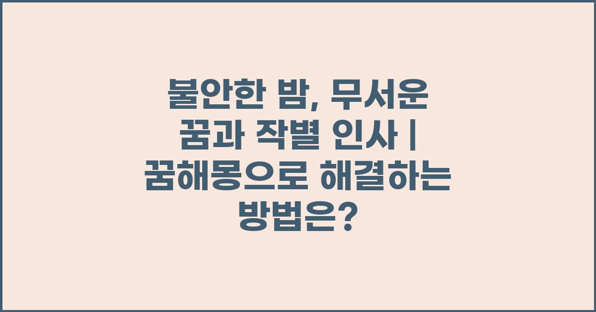 불안한 밤, 무서운 꿈과 작별 인사 | 꿈해몽 꿈풀이 꿈해석 꿈의미. 나는 이제 이러한 꿈들을 단순히 악몽으로 원망하기보다, 나 자신의 이야기를 들어주는 기회로 삼았다. 꿈해석을 통해 내가 무엇을 걱정하고 있는지를 이해하며 교훈으로 삼는 것이었다. 그러나 감정적으로 힘든 과정이기에, 때로는 작별 인사를 하는 것이 필요하다는 것을 느꼈다.