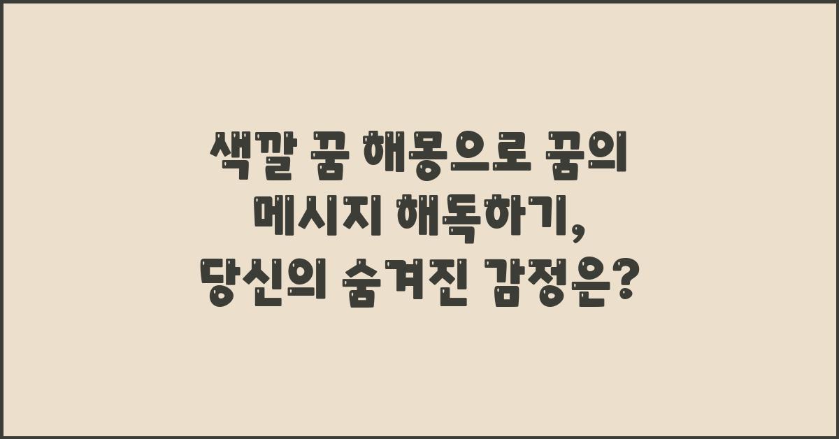색깔 꿈 해몽으로 꿈의 메시지 해독하기는 단지 흥미로운 놀이가 아닙니다. 실질적으로 감정 해소와 자기 이해를 높이는 데 큰 효과가 있습니다. 또한, 본인의 상태를 반추하며 긍정적인 방향으로 나아갈 수 있도록 돕는 여러 방법도 갖추고 있습니다. 아래 표에서는 색깔별 감정 해석을 정리해봤습니다!