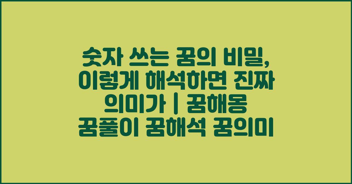 꿈은 우리의 무의식을 드러내는 창인데, 그 중에서도 숫자가 등장하는 꿈은 다양한 해석을 낳고 있습니다. 꿈속에서 숫자를 쓰는 것은 단순한 일상이 아닌, 숨겨진 의미와 연결될 수 있습니다. 이 글에서는 숫자 쓰는 꿈의 비밀, 숨겨진 의미는? | 꿈해몽 꿈풀이 꿈해석 꿈의미에 대해 깊이 있게 탐구해 보겠습니다.