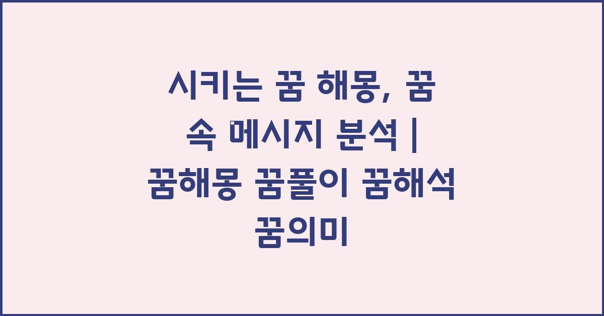 🔍 시키는 꿈 해몽: 메시지를 찾아내는 과정