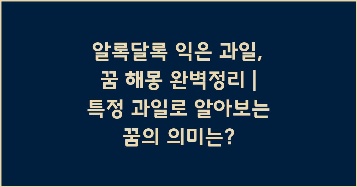 🍏 알록달록 익은 과일, 꿈 해몽의 매력