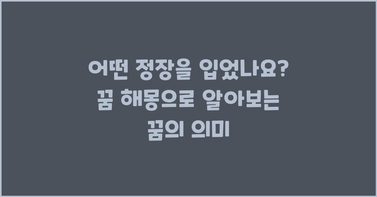 꿈 속에서 어떤 정장을 입었나요? 물론, 꿈은 나의 무의식이 드러나는 무대입니다. 그곳에서 나는 여러 상징적 이미지와 상황을 만날 수 있습니다. 정장은 대개 격식이나 권위, 사회적 지위를 상징합니다. 그렇다면 자신이 정장을 입는 꿈을 꿨다면 어떤 의미가 있을까요? 이번 글을 통해 꿈 해몽의 세계로 함께 떠나보겠습니다.