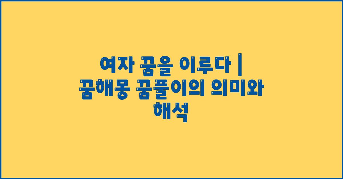🌟 여자 꿈을 이루다: 꿈의 의미를 탐구하다