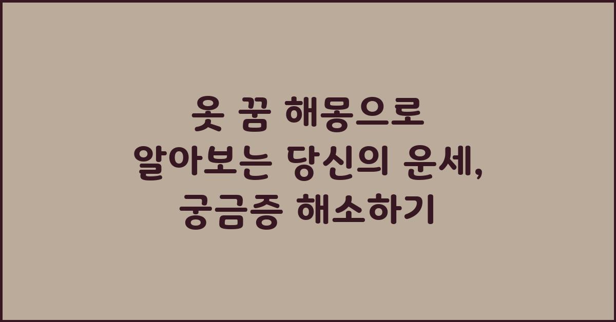 옷 꿈 해몽으로 알아보는 당신의 운세는 정말 믿을 수 있나요?
