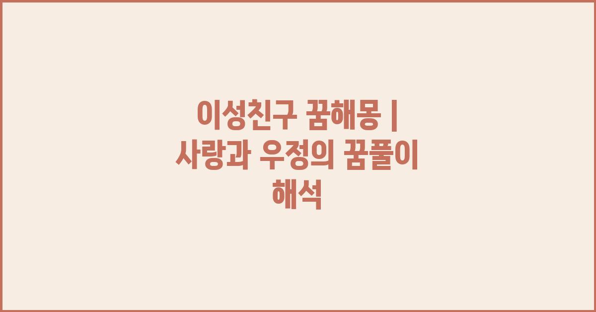 이성친구 꿈해몽은 꿈에서 나타나는 이성친구가 내 마음의 어떤 감정을 반영하는지를 해석하는 것을 뜻합니다.