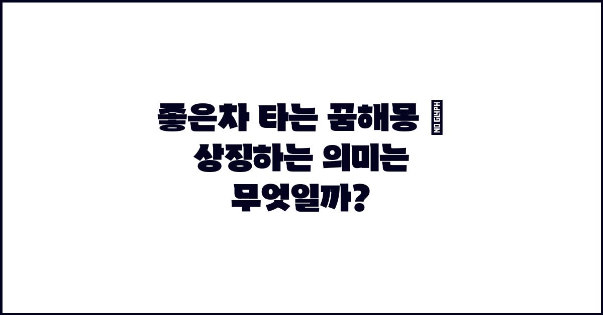 꿈의 세계는 정말 신비롭고 다채롭습니다. 특히, 좋은차를 타는 꿈은 많은 사람들에게 긍정적인 상징으로 여겨지곤 하죠. 과연 좋은차 타는 꿈해몽 | 꿈해몽 꿈풀이 꿈해석 꿈의미가 어떤 의미를 담고 있는지 알아보겠습니다. 좋은차는 우리 삶에서 편안함과 안정성을 제공하는 요소로, 이런 꿈은 남다른 의미를 지닌다고 여겨집니다.