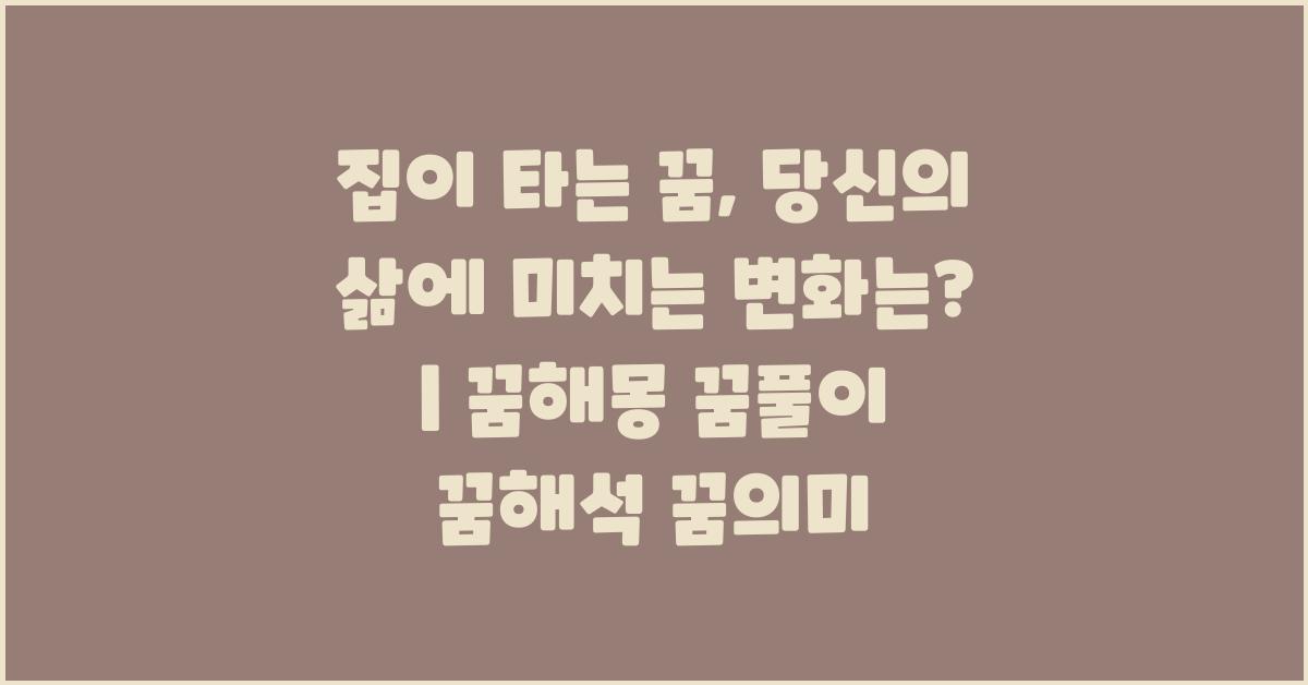꿈은 우리가 일상에서 놓치기 쉬운 감정이나 생각을 일깨워줄 기회를 제공합니다. 특히, 우연의 일치처럼 느껴질 수도 있는 꿈 중 하나가 바로 집이 타는 꿈입니다. 꿈속에서 우리의 집이 불타는 모습을 보게 되는 것은 놀라움과 두려움을 동시에 안겨줍니다. 하지만 이런 일들은 단순히 나쁜 징조로 끝나지 않습니다. 집이 타는 꿈, 당신의 삶의 변화? | 꿈해몽 꿈풀이 꿈해석 꿈의미의 관점에서, 이 꿈이 우리에게 어떤 메시지를 전달하려 하는지 살펴보아야 합니다.
