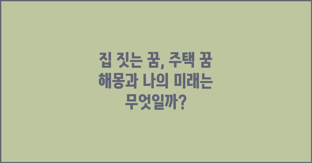 꿈에서 집을 짓는 것은 많은 사람들에게 본인의 미래에 대한 불안감을 나타냅니다. 이 꿈은 보통 새로운 시작, 변화 또는 자기 개발을 암시하는 것으로 해석될 수 있습니다. 실제로 집은 우리의 삶을 상징하는 가장 기초적인 구조물이기도 하며, 이 꿈은 자신이 원하는 삶의 방식이나 목표를 설정하고 달성하려는 열망을 나타낼 수 있습니다. 집은 개인의 안전과 안정을 의미하기 때문에, 집 짓는 꿈을 꾼다면 내면의 갈망이나 꼭 이루고 싶은 목표가 있다는 신호일 수 있습니다.