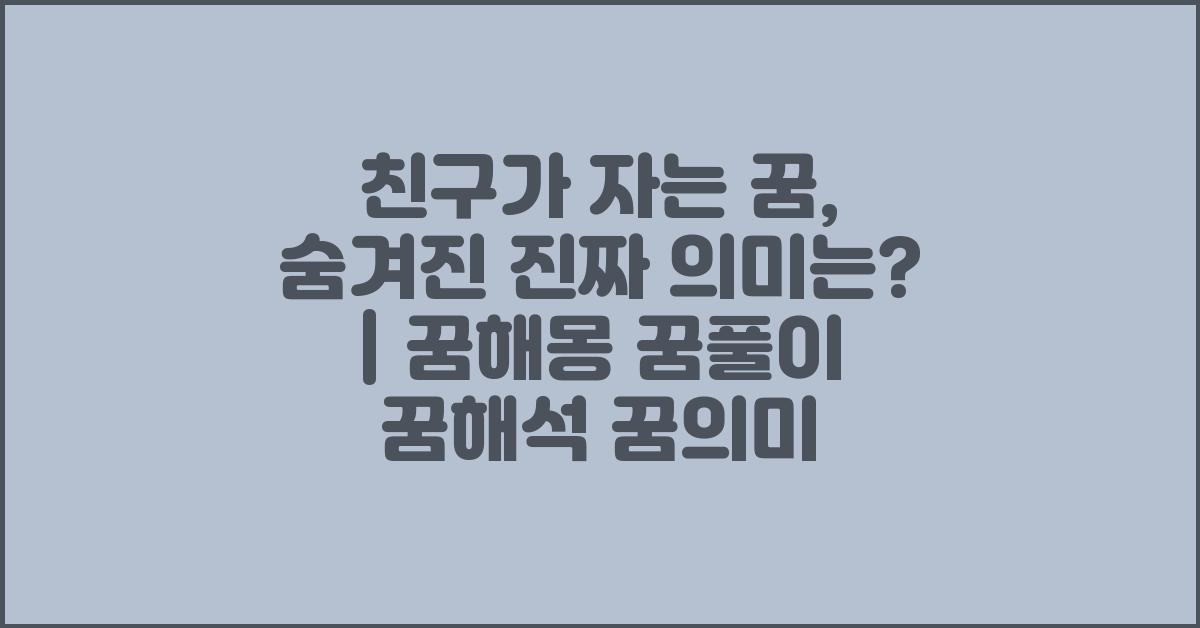 🌟 친구가 자는 꿈, 무슨 의미일까요? | 꿈해몽 꿈풀이 꿈해석 꿈의미
