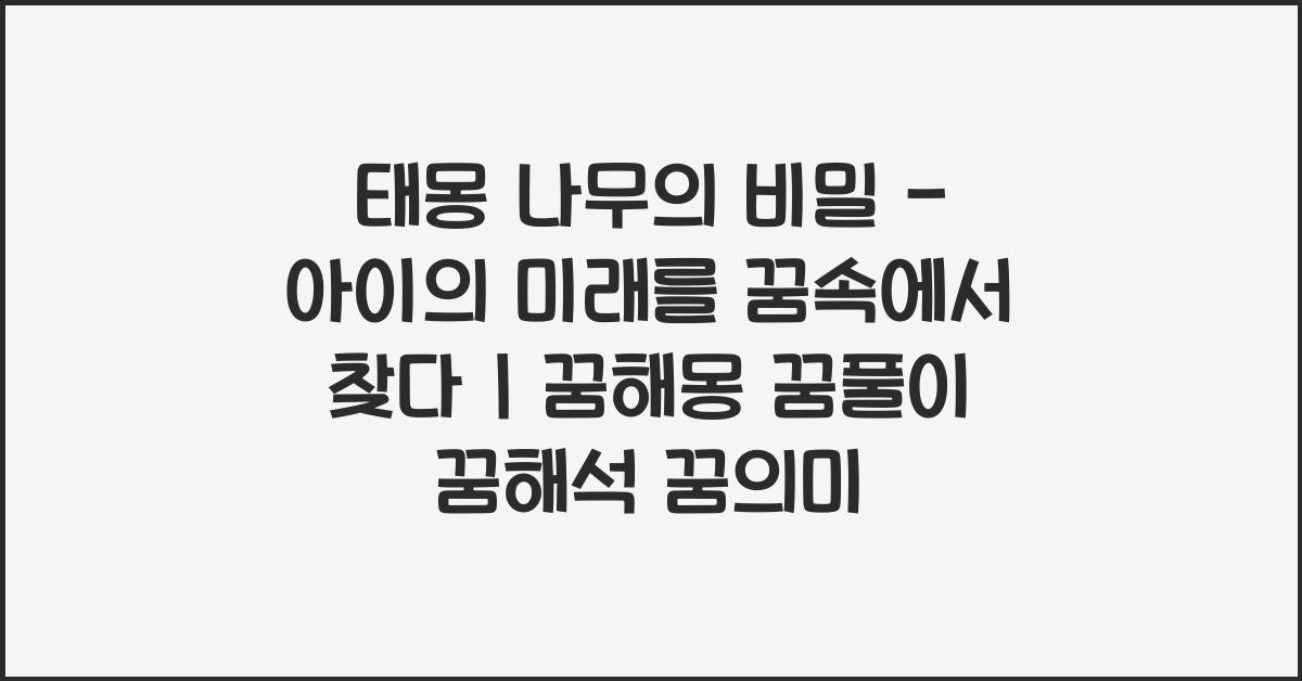 태몽 나무는 한국 전통문화에서 아기의 미래를 예측할 수 있는 중요한 요소로 간주됩니다. 태몽이란 꿈 속에서 아기를 잉태한 여성 또는 그 가족이 경험하는 다양한 형태의 꿈을 의미하며, 여기서 태몽 나무의 이미지가 자주 등장합니다. 많은 사람들은 태몽 나무가 어떤 모습인지, 그리고 그 의미가 무엇인지에 대해 궁금해하곤 합니다. 이 나무는 건강하고 행복한 아이로 성장할 것이라는 상징적인 의미를 지니고 있으며, 꿈을 통해 아이의 미래를 보다 | 꿈해몽 꿈풀이 꿈해석 꿈의미와 깊은 연관이 있습니다.