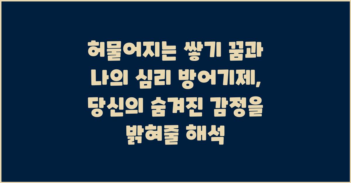 이 꿈이 우리에게 주는 메시지는 현실에서 느끼는 불안이나 걱정을 돌아보라는 것입니다. 과거의 트라우마, 현재의 스트레스나 관계에서의 어려움 등이 이러한 꿈을 유발할 수 있습니다. 그래서 꿈의 해석을 통해 자신의 감정을 이해하고, 심리적 안정을 찾는 것이 중요합니다. 이런 해석이 바로 허물어지는 쌓기 꿈과 나의 심리 방어기제를 다루는 핵심입니다.