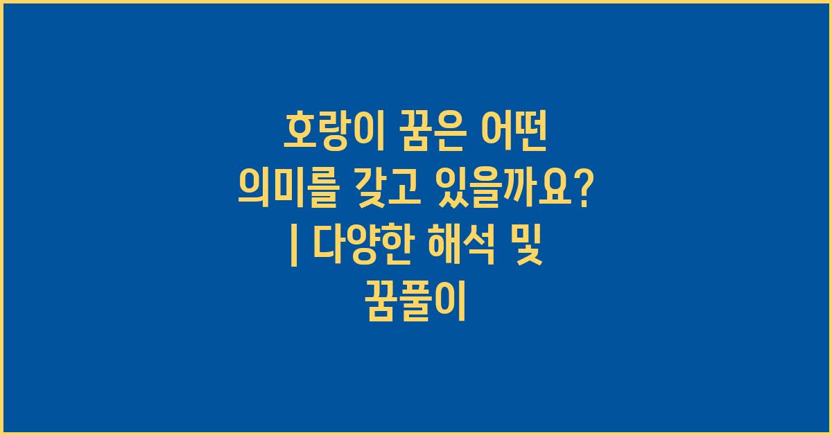호랑이 꿈은 강렬한 상징성을 지니며, 개인적인 문제를 의미하는 경우가 많습니다. 여러분이 꿈을 꾼 후 어떤 감정을 느꼈는지에 따라 해석이 달라질 수 있습니다. 긍정적인 힘을 지닌 호랑이를 통해 자신을 돌아보며, 갈등과 두려움을 극복할 수 있습니다.