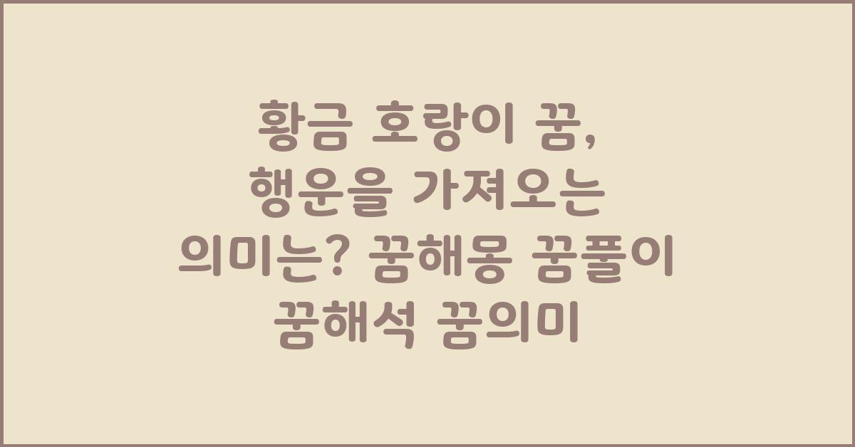 꿈은 우리에게 많은 메시지를 전달하는 신비로운 경로입니다. 특히, 황금 호랑이에 대한 꿈은 귀하고 특별한 의미를 지닙니다. 많은 사람들은 이런 꿈을 꾸었을 때, 내부의 깊은 감정과 기대감이 솟구친 경험이 있을 것입니다. 황금 호랑이 꿈, 엄청난 행운의 징조? | 꿈해몽 꿈풀이 꿈해석 꿈의미에 대해 알아보겠습니다.