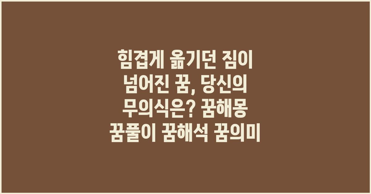 여러분도 '힘겹게 옮기던 짐이 넘어진 꿈'을 통해 현재 자신이 짊어지고 있는 짐이 무엇인지, 왜 그런 느낌을 가졌는지 스스로에게 물어보는 시간을 가져보세요. 가끔은 어딘가에 대답이 숨겨져 있을지도 모릅니다.